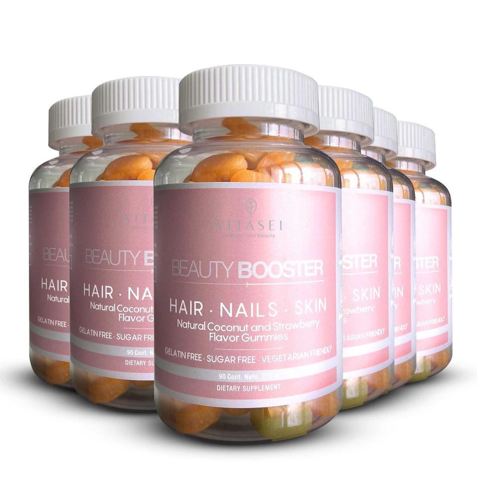 Beauty Booster es un suplemento vitaminico en gomitas con una fórmula completa que ayuda a revitalizar pelo, uñas y piel en la mujer.