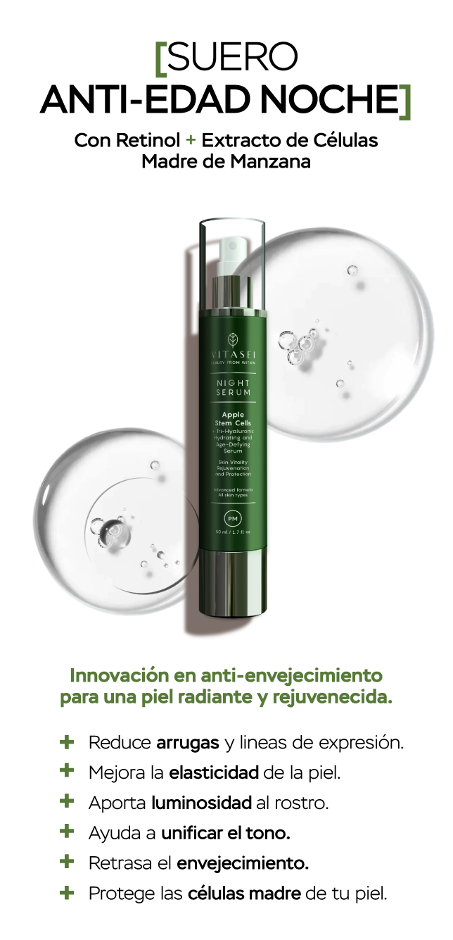 Ayuda a reducir la apariencia de arrugas y líneas finas, estimula la renovación celular y mejora la textura de la piel para un aspecto más juvenil y firme.