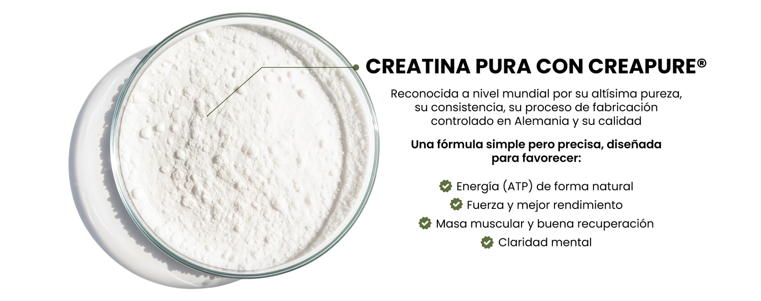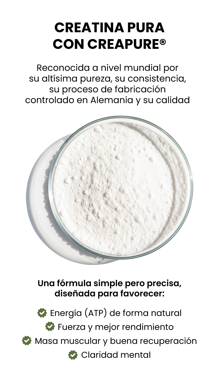 No toda la creatina es igual. Creapure® es un monohidrato de creatina premium fabricado en Alemania, reconocido por su pureza excepcional, control de calidad riguroso y resultados consistentes.