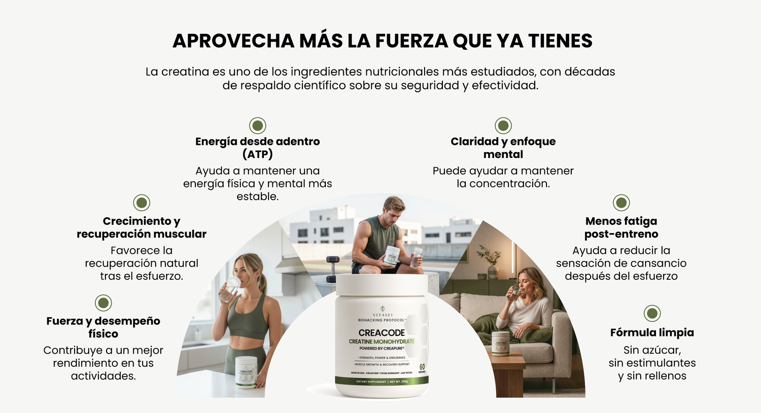 Absolutamente. Tanto hombres como mujeres usan creatina para fuerza, energía, rendimiento cognitivo y bienestar general. Los beneficios no son exclusivos de ningún género.