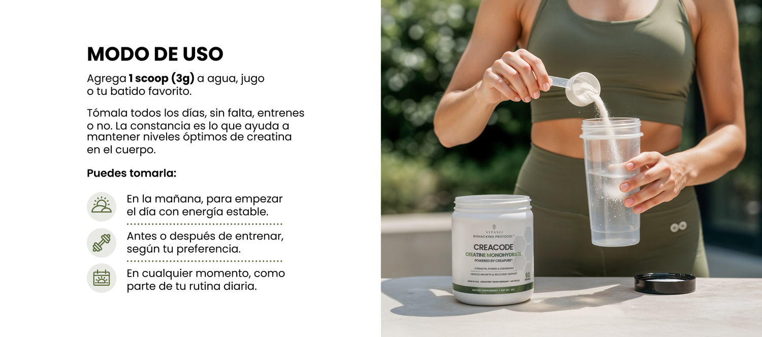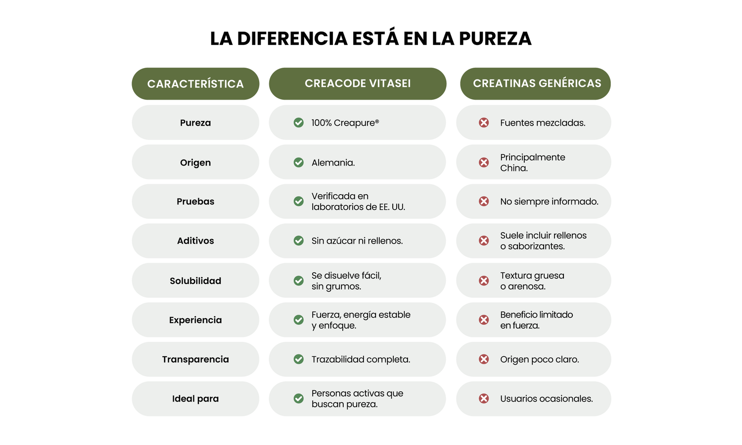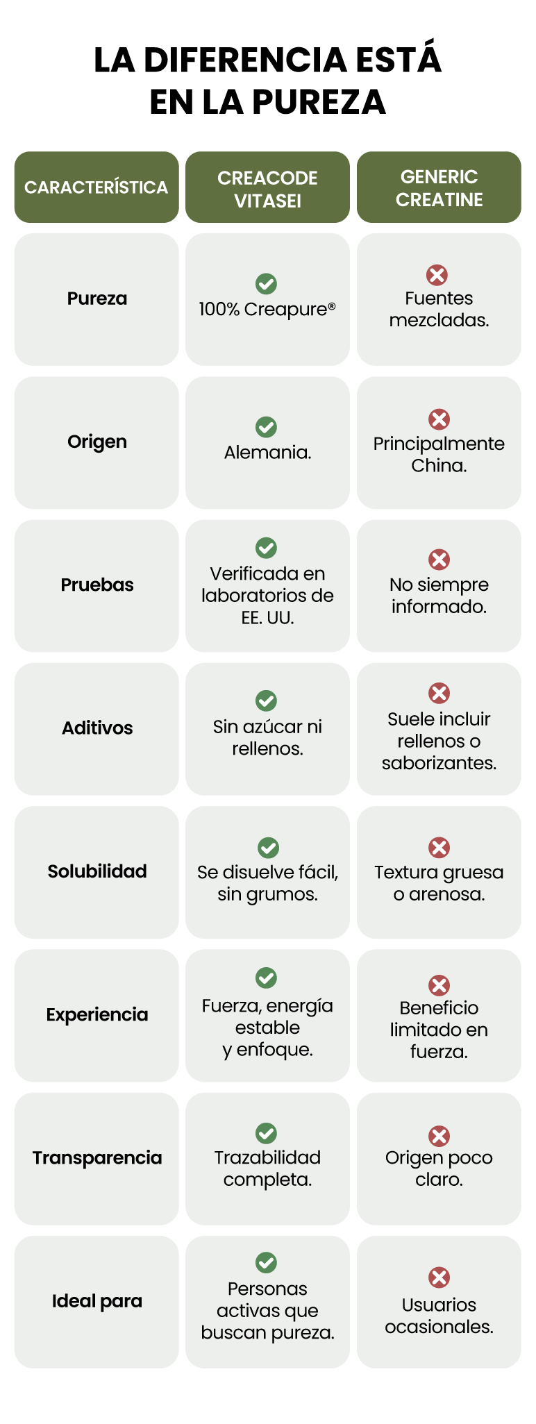 - Creacode contiene Creapure®, la forma más pura disponible.