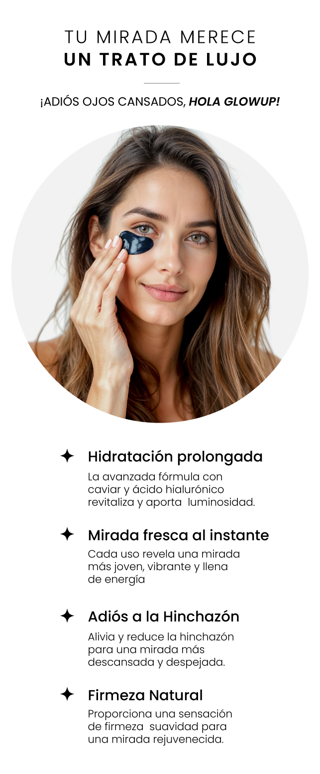 Si tus ojos han sufrido por los viajes largos, las noches de estrés o el cansancio diario, estos parches para ojos son tus aliados perfectos. Infundidos con caviar, cristales de colágeno, ceramidas, niacinamida y otros ingredientes innovadores para rejuvenecer tu mirada.