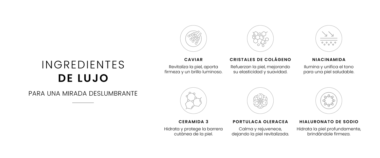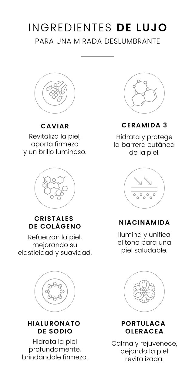 Revitaliza tu mirada con el poder del caviar, la niacinamida, el colágeno y la ceramida 3.