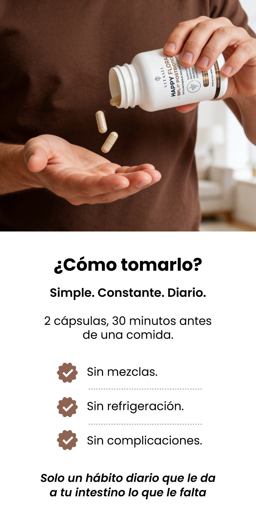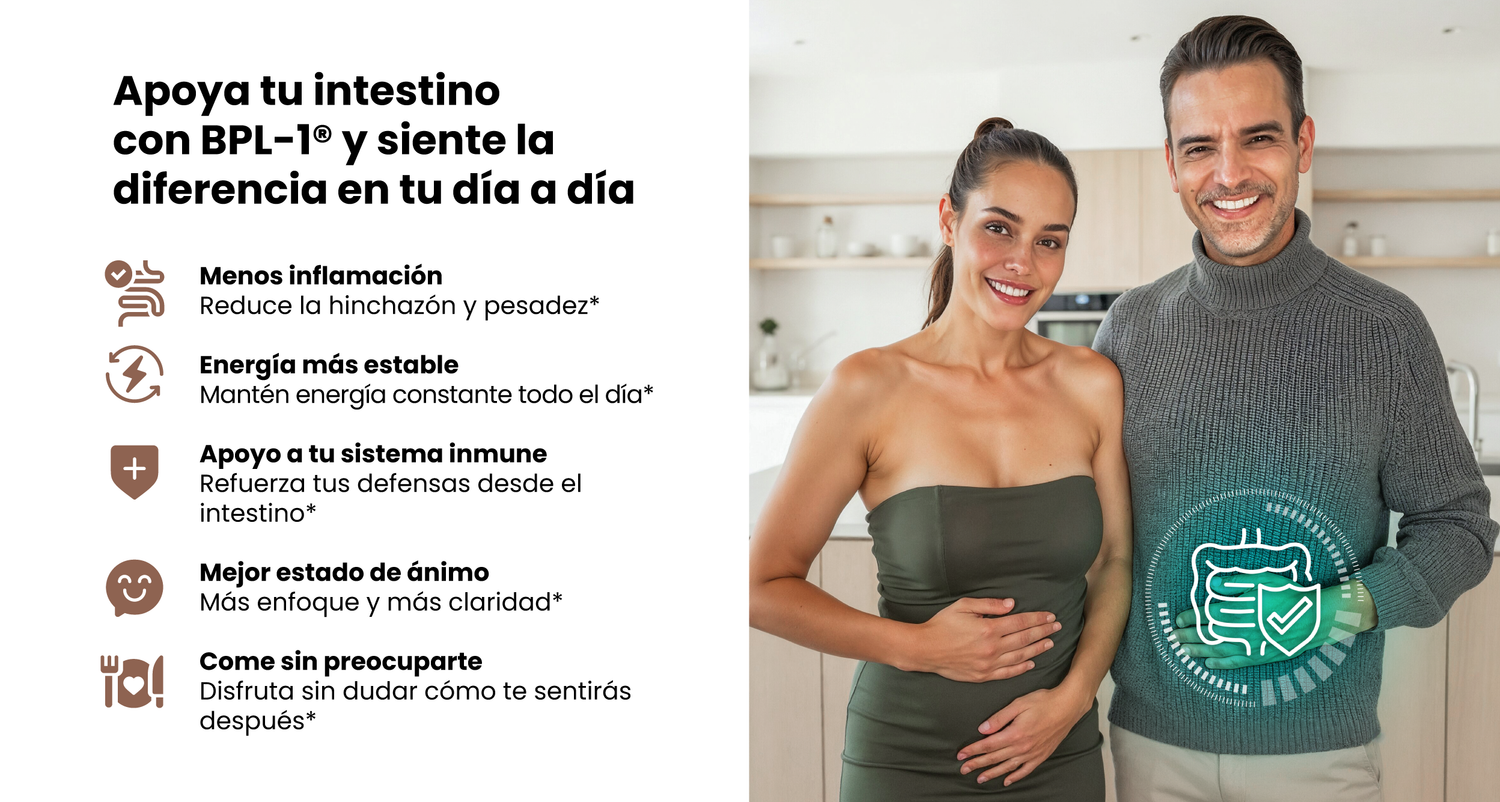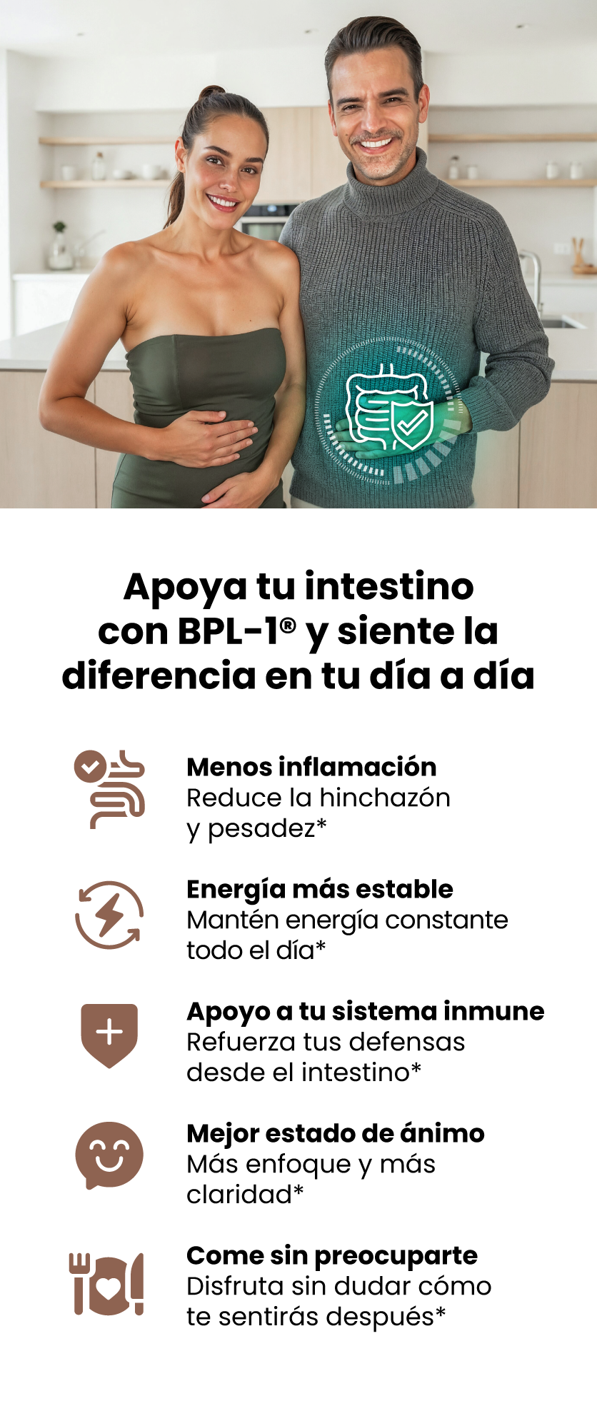 ¿Ya tomas un probiótico? Perfecto. BPL1 es el siguiente paso. Los probióticos introducen bacterias vivas beneficiosas. Los postbióticos van más allá, son los compuestos bioactivos que tu cuerpo puede aprovechar de inmediato, altamente estables y consistentes. El mismo objetivo, al siguiente nivel.*