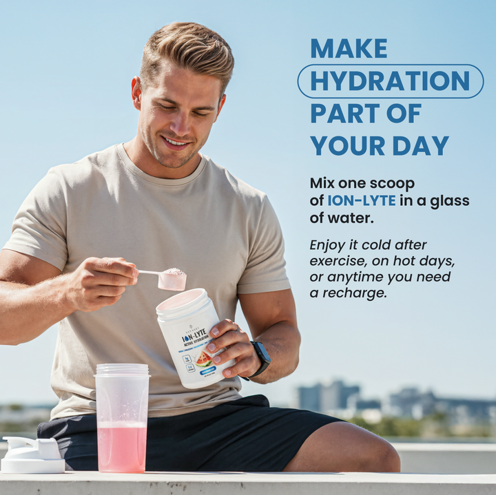 ION-LYTE es un suplemento en polvo con 5 minerales esenciales que ayudan a mantener el equilibrio de líquidos y minerales en el cuerpo, especialmente después de sudar o realizar actividad física.