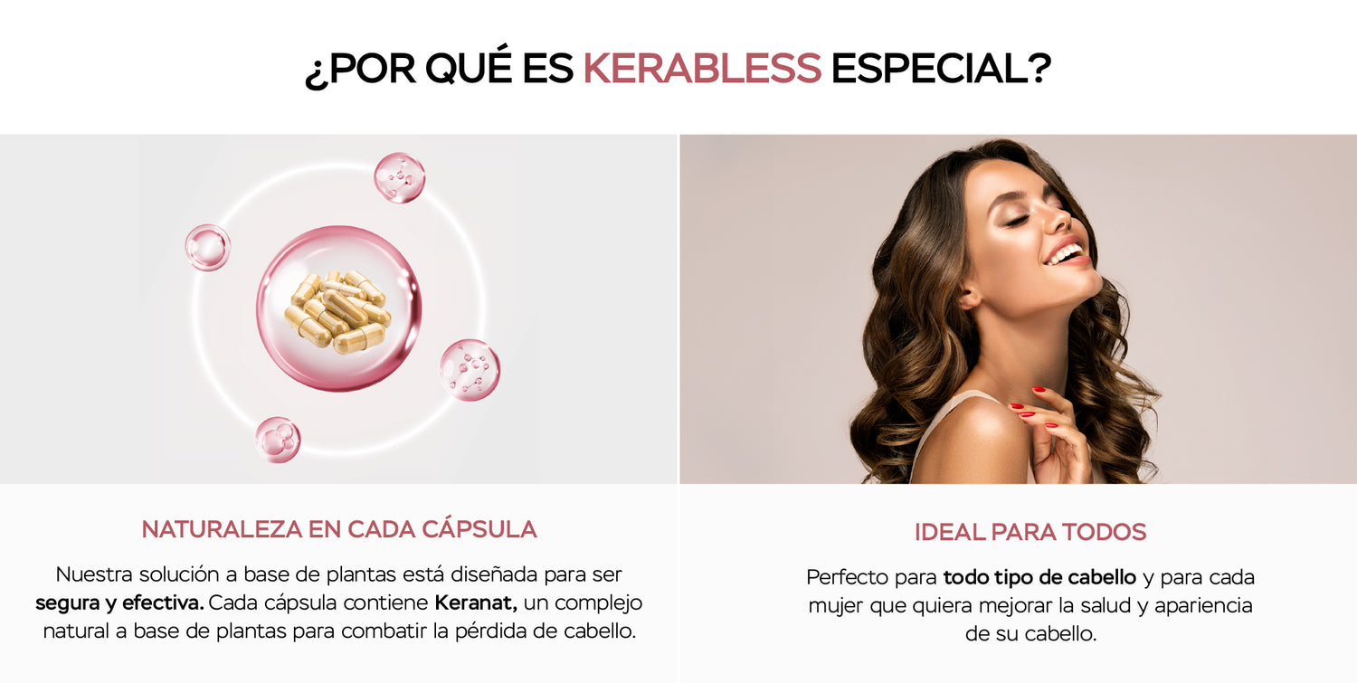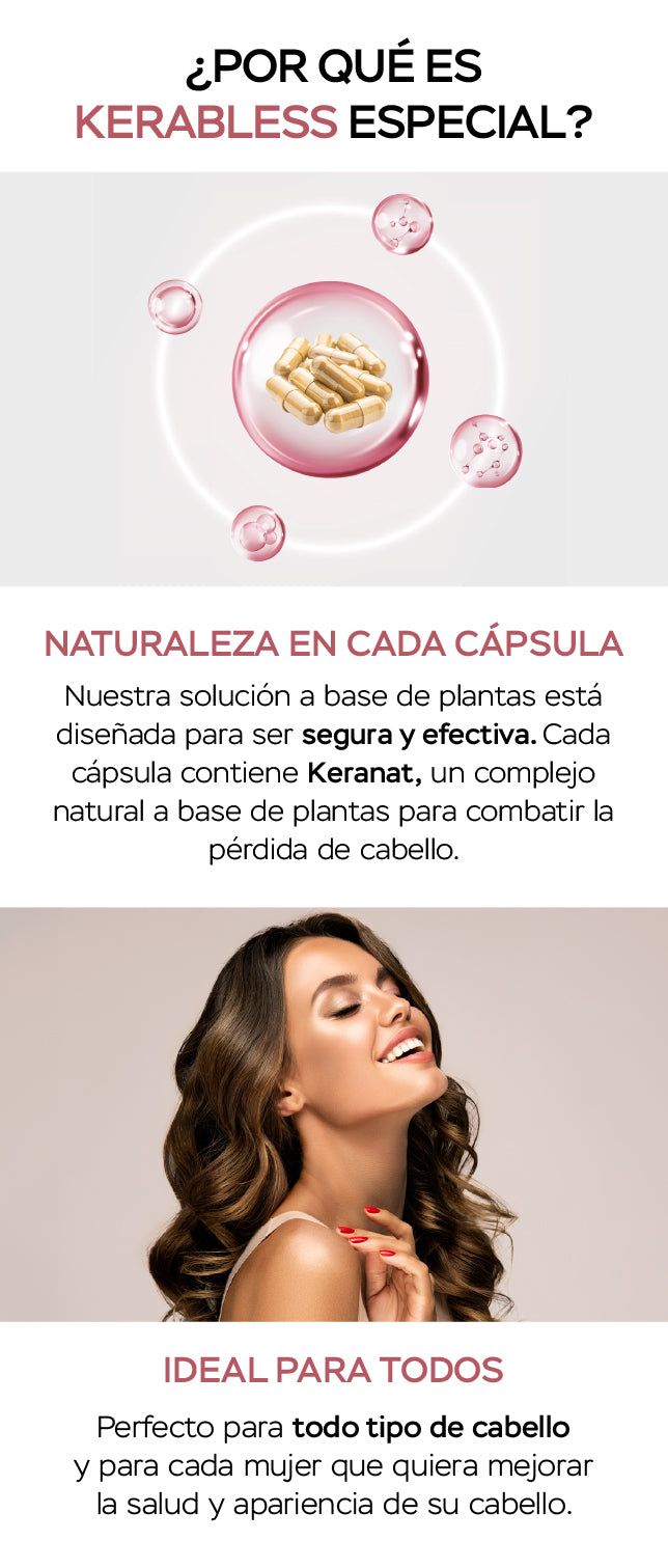 Kerabless es una fórmula de origen vegetal que combina ingredientes naturales para: