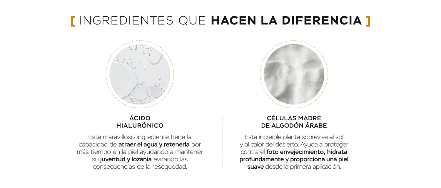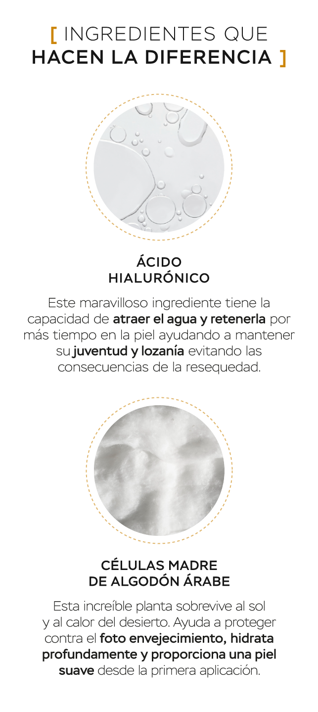 - Contiene Ácido Hialurónico para una piel increíblemente hidratada.†