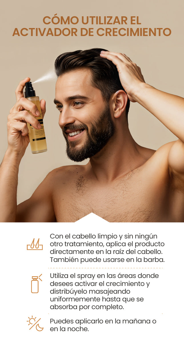 "No solo me ayudó a detener la caída y a tener más cabello. También lo aplico en mi barba y me gusta mucho cómo se ve."