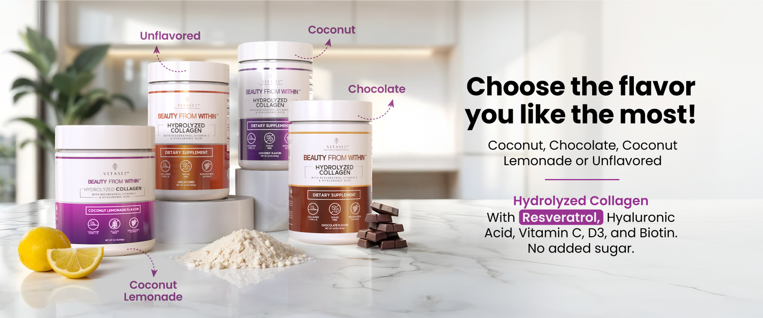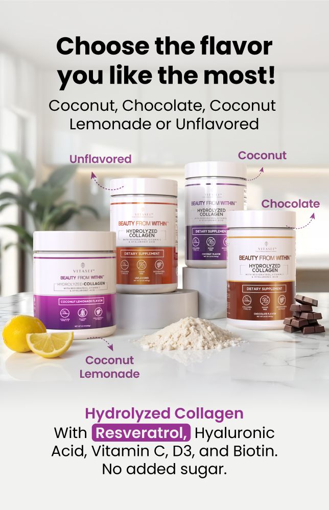 Vitasei collagen comes in 2 delicious flavors: Coconut and Unflavored. Not only are they tasty, but they’re also incredibly versatile for any time of day.