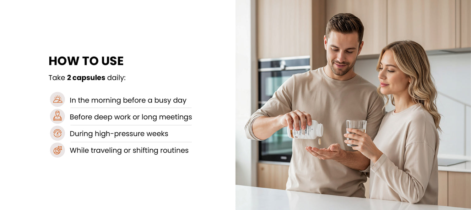 You can, but most people prefer taking it daily. Adaptogens generally work best when they’re part of a consistent routine instead of occasional use.