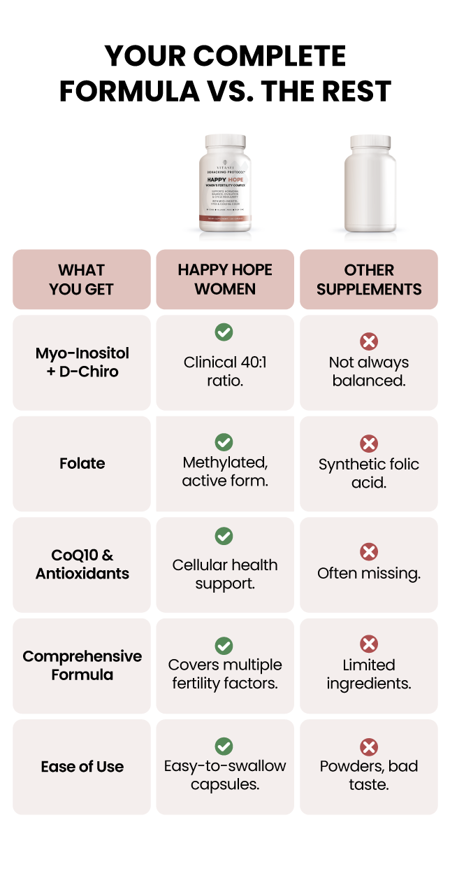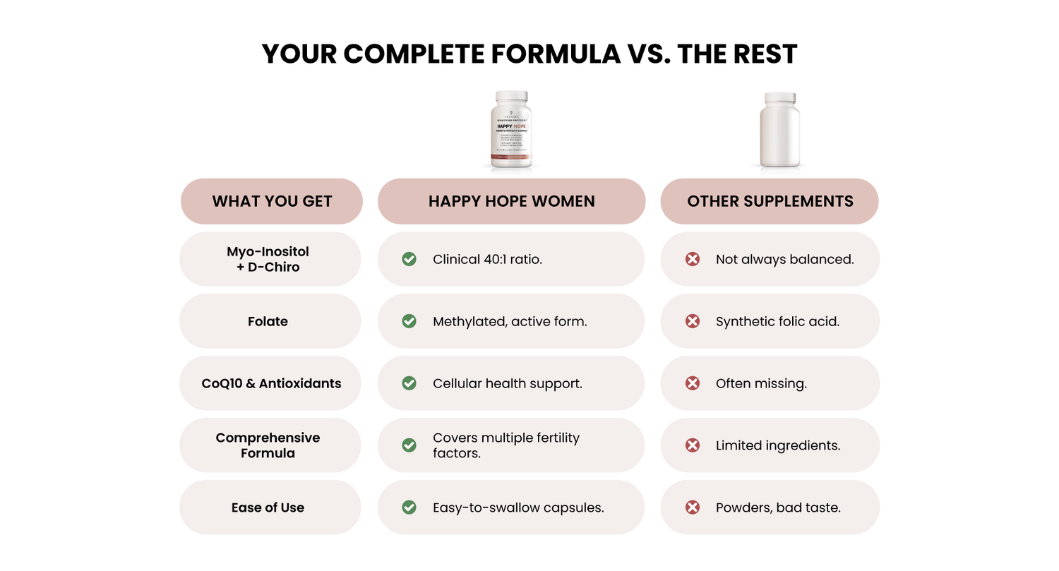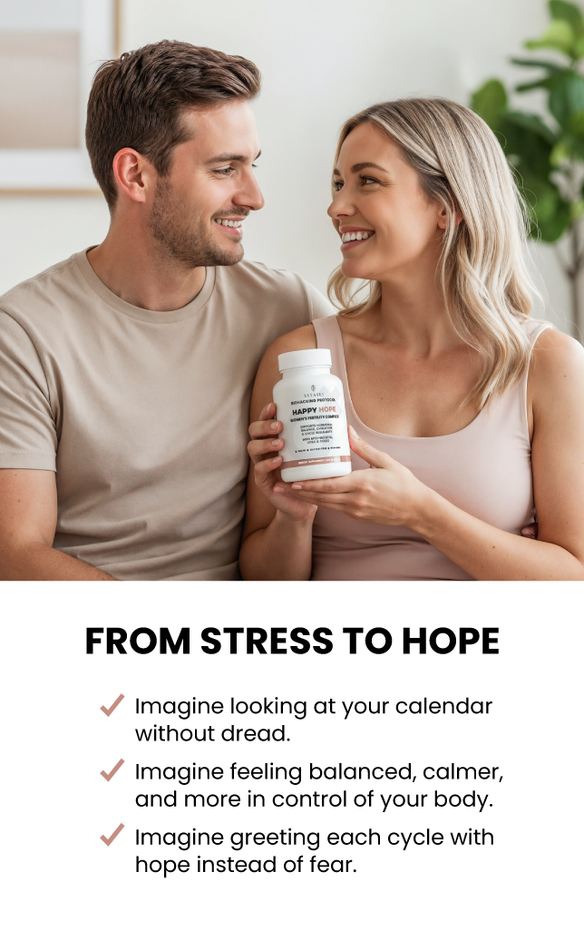 That’s why we created Happy Hope – Women’s Fertility Complex: a gentle yet powerful formula designed to support women at every step of their fertility journey.