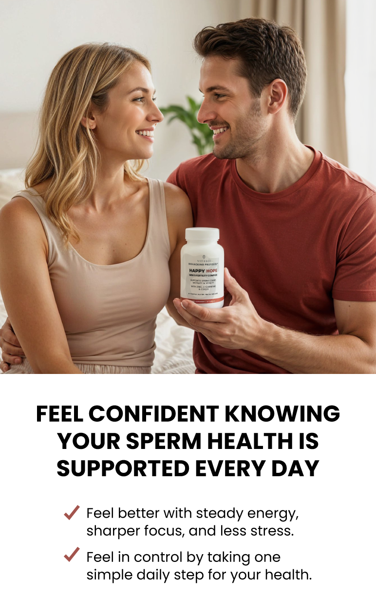 That’s why we created Happy Hope Men’s Fertility Complex, a science-backed formula designed to support men’s reproductive health from the inside out.