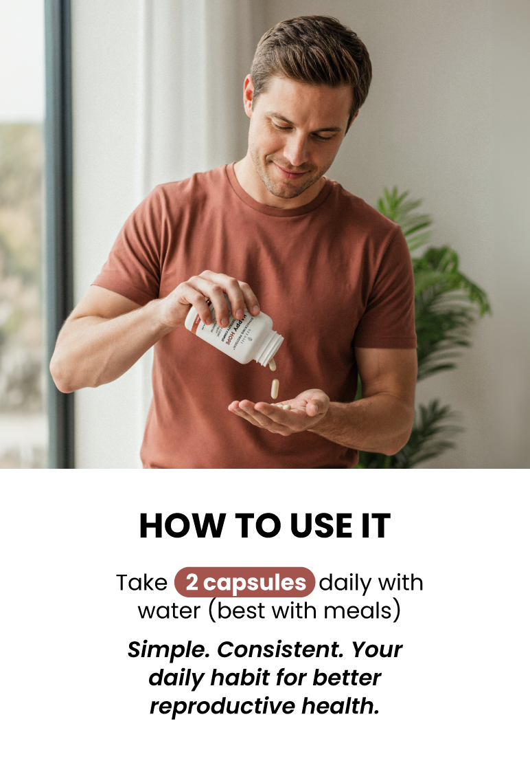 It’s not a quick fix — it’s science-based. The formula includes Zinc, L-Carnitine, and CoQ10, three key nutrients that work together to support male vitality, energy, and reproductive wellness from within.