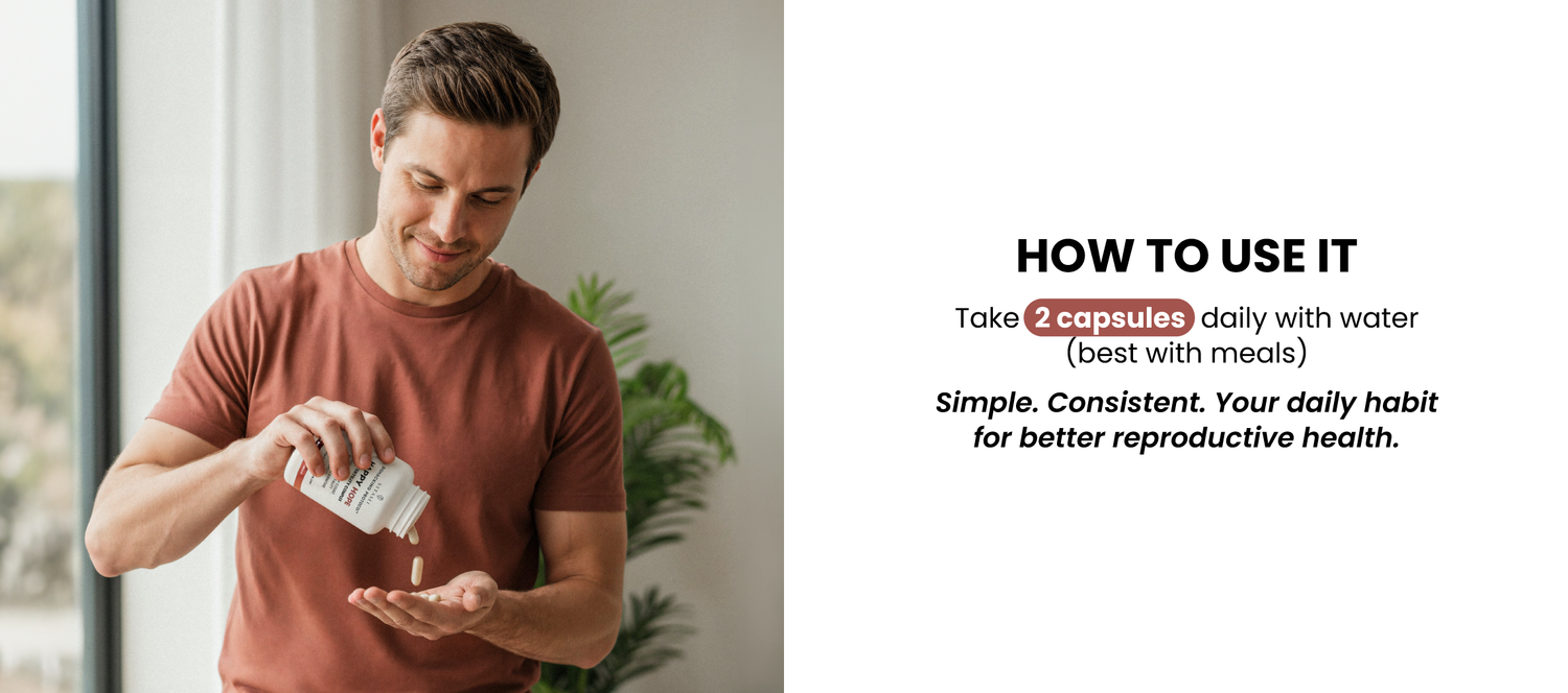 Just take 2 capsules a day with water — ideally with a meal. The key is consistency; the more regular you are, the better your body responds.