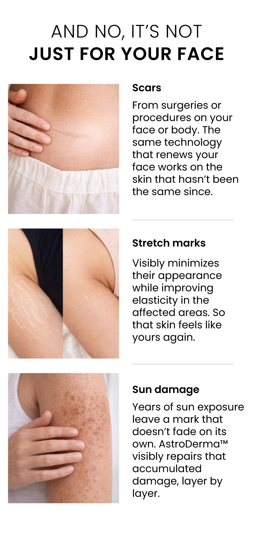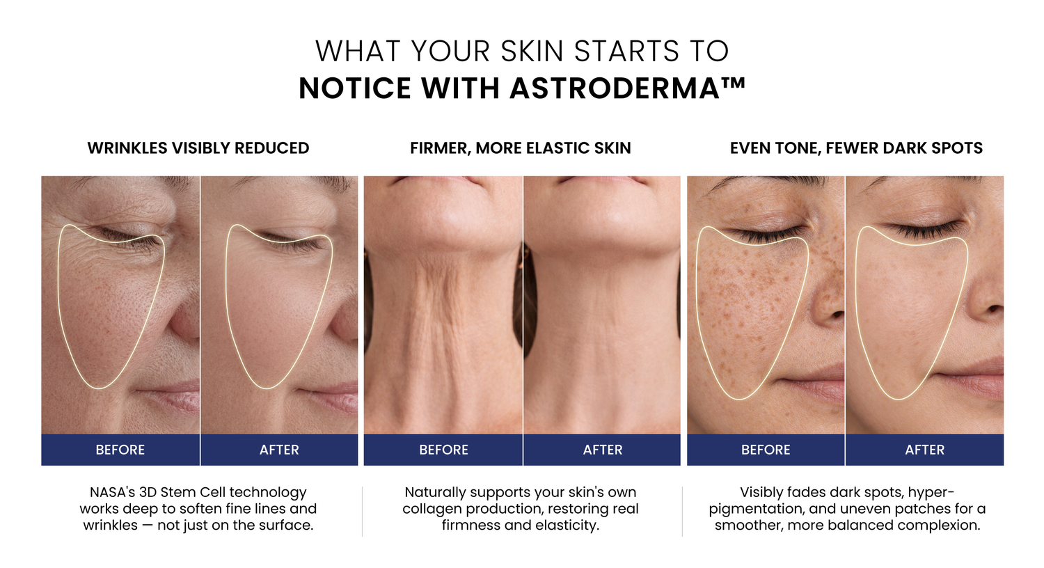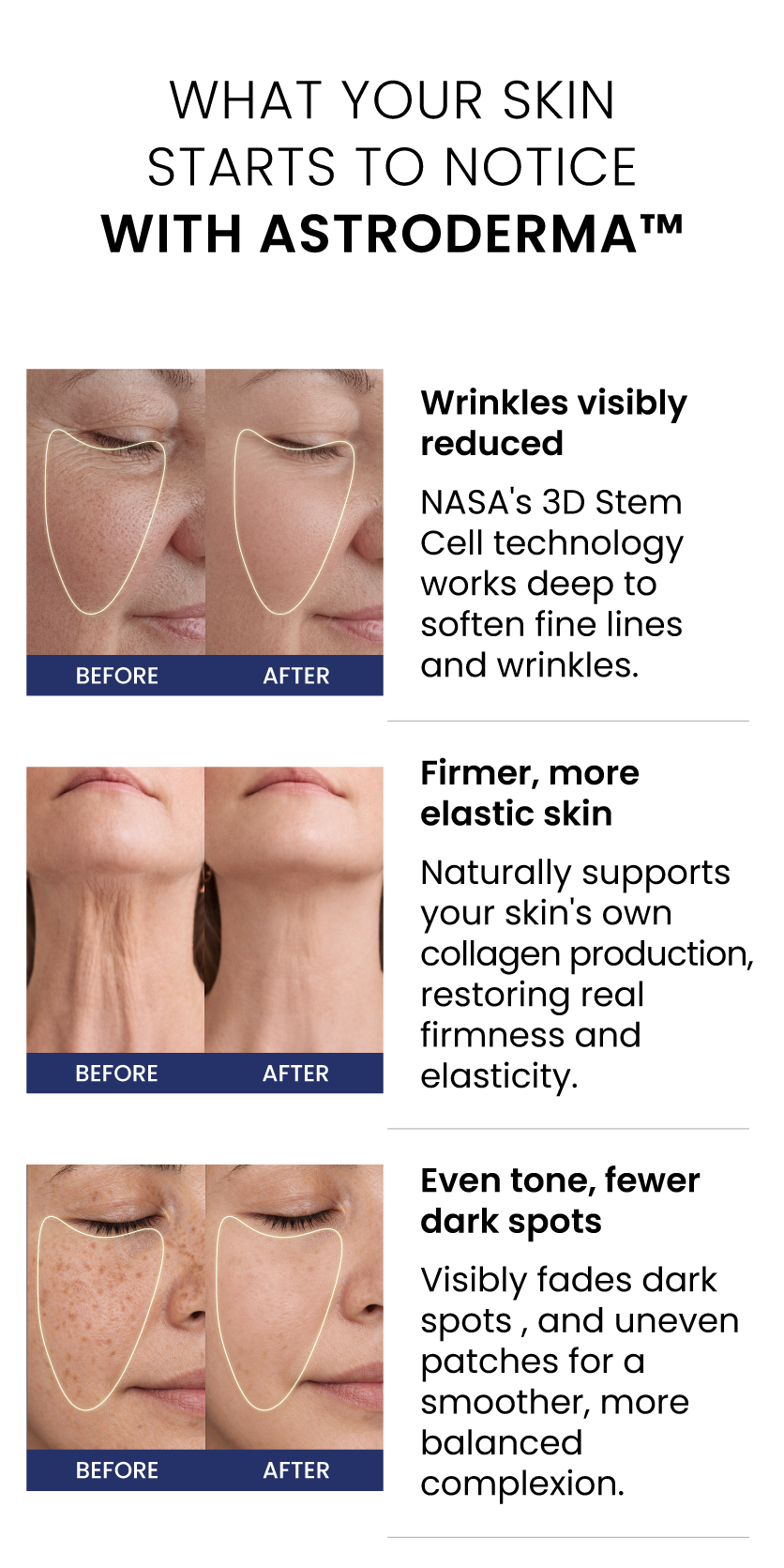 Most luxury creams hydrate and stop there. AstroDerma™ targets regeneration — with stem cells, NAD+, and space-inspired science that most creams don't come close to. If previous creams left your skin soft but not actually different, this was built for exactly that gap.